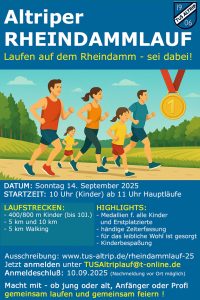Wir freuen uns über die hohe Teilnehmerzahl beim heutigen Altriper Rheindammlauf berichten zu können. Fast 60 Kinder nahmen an den 400 m und 800 m Läufen teil. Bei den 400 m (21 Kinder) wurden zwei und bei den 800 m (37 Kinder) sogar drei Läufe absolviert.